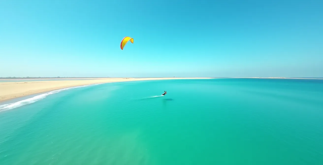 Le choix du spot est sans doute le facteur le plus déterminant dans la vitesse de votre progression. À Djerba, vous avez principalement le choix entre la pleine mer et l’immense lagune. Pour un débutant, la réponse est sans appel : la lagune n’est pas une option, c’est une nécessité. C’est un véritable accélérateur d’apprentissage. Pourquoi ? La raison principale est la profondeur de l’eau. Dans la lagune, vous avez pied partout, avec de l’eau arrivant entre les genoux et la taille. Cet élément change absolument tout.